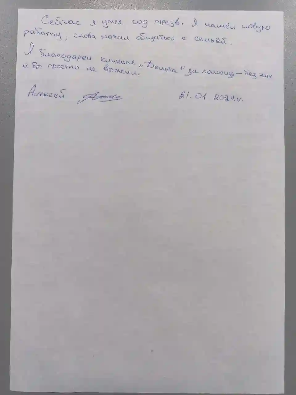 В "Дельте" есть отличные психологи, которые научили меня справляться со стрессом и восстанавливать утраченные связи с близкими. Благодаря этим занятиям я понял, что алкоголь был для меня способом убежать от проблем, а не решать их. Сейчас я уже год трезв. Я нашёл новую работу, снова начал общаться с семьёй. Я благодарен клинике "Дельта" за помощь — без них я бы просто не выжил.